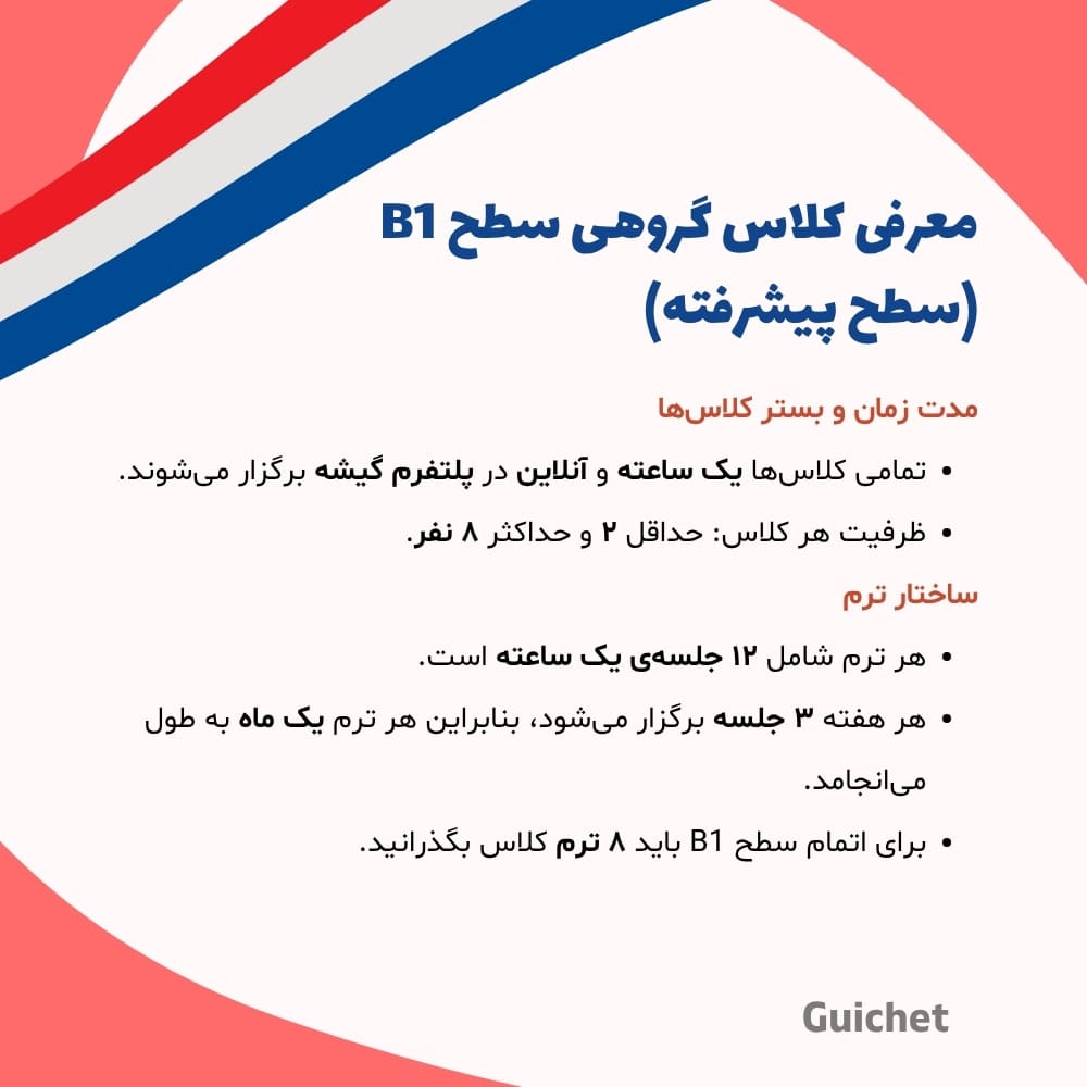 • دوره گروهی سطح B1 زبان فرانسه در پلتفرم اختصاصی گیشه